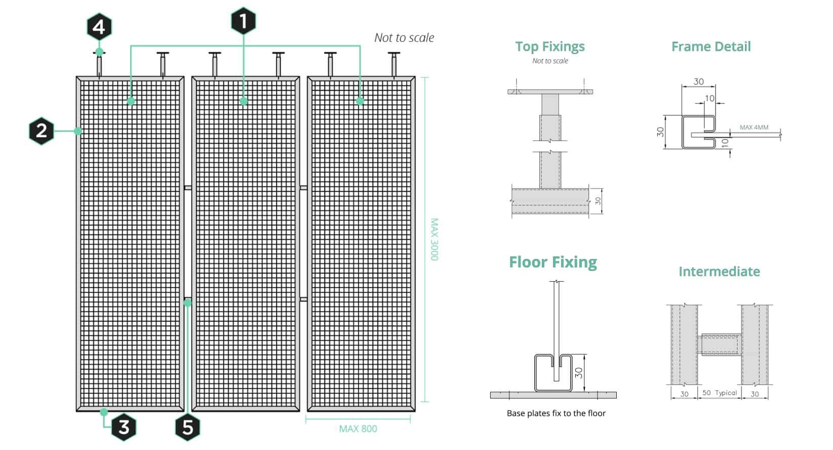 Manufactured in bespoke sizes, the AP210 offers a wide selection of mesh patterns and finishes to complement a variety of architectural styles. Built for more demanding environments, the system includes reinforced top supports and a solid flat fixing at the base for enhanced stability. Ideal for dividing space in a subtle yet elegant way, the AP210 delivers both durability and design flexibility.